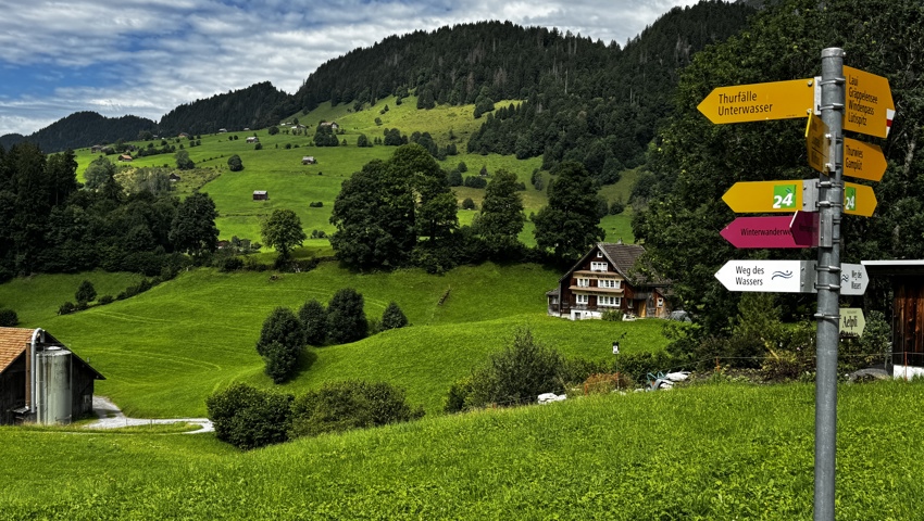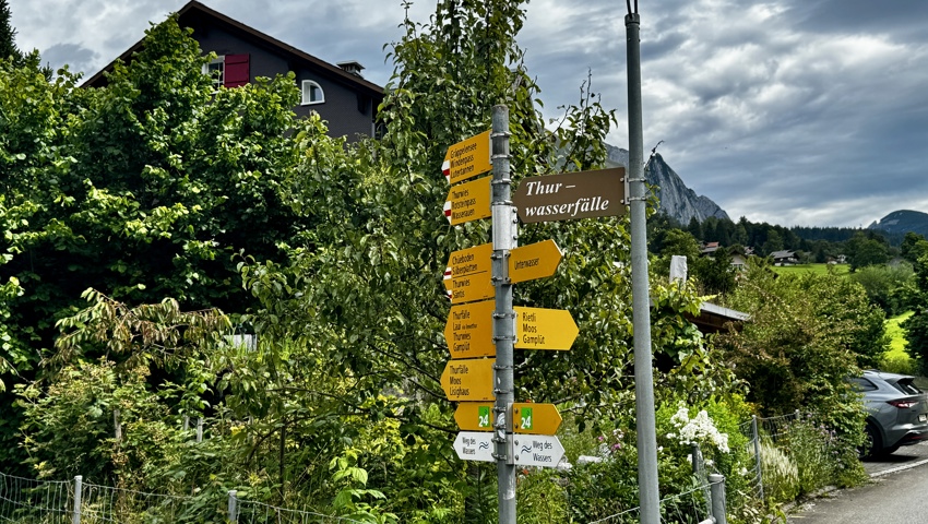 Ein Abstecher zu den Thurwasserfällen und der Galerie lohnt sich – besonders nach Regenfällen, wenn sich die Wassermassen innert Stunden vervielfachen können. Bei Trockenheit oder im Herbst dagegen ist das Bachbett manchmal völlig ausgetrocknet. Nach dem Besuch der Thurwasserfälle ist es nur noch ein kurzer Spaziergang ins Dorf Unterwasser.
