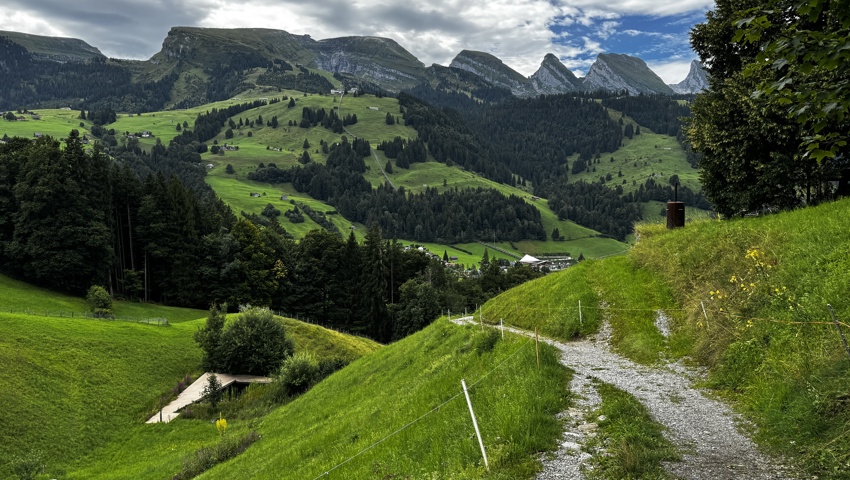 Weiter geht’s über das Alpli bis zur Laui. In der Laui gibt es einen Rastplatz mit Kiosk. Der Kiosk ist im Sommer und Herbst an Wochenenden bei gutem Wetter geöffnet. Entlang einer Strasse und durchs «Gässli» führt die Wanderung weiter bis zur Ennetthur.