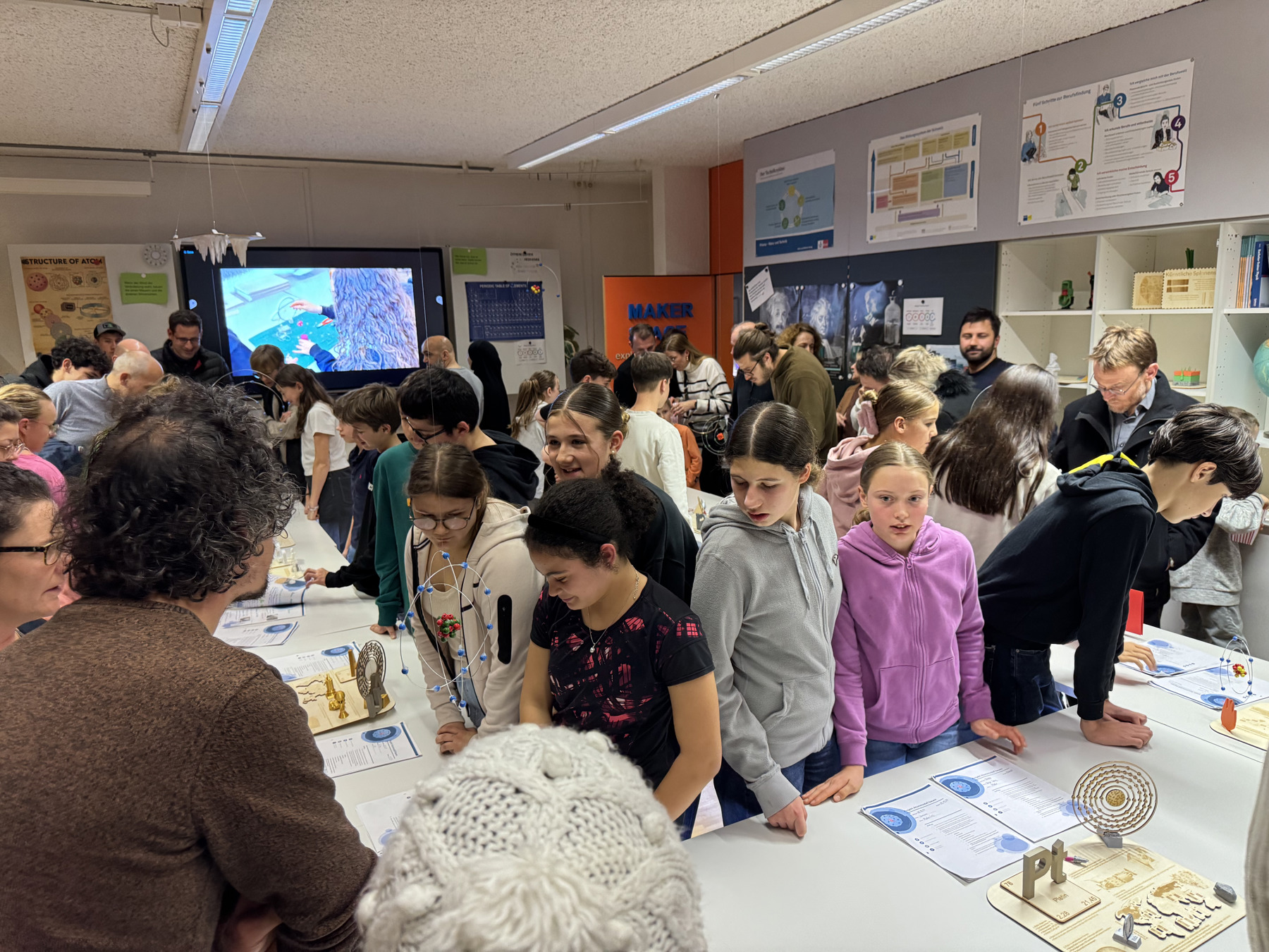 Nach der Evaluationsphase kreierten sie eigenständig ihre 3D-Objekte mittels CAD-Zeichnungsprogramm, die anschliessend mit Hilfe moderner Technik Realität wurden. Mit Mitteln wie einem 3D-Drucker, einer Lasercut-Maschine oder Heissleim hat man in Zweiergruppen Goldnuggets geprintet, Holzplatten gefräst oder filigrane Moleküle designt. Die Teams waren hoch motiviert, sich kreativ und strategisch mit ihren Interessen auseinanderzusetzen.