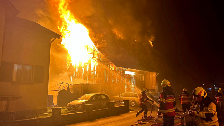 Am Sonntag, 17. März, erhielt die Kantonspolizei St.Gallen um kurz nach 4.30 Uhr einen Notruf von einem Brand an der Oberdorfstrasse in Diepoldsau. Als die Feuerwehr eintraf, stand das Einfamilienhaus mit angebauter Scheune bereits im Vollbrand.