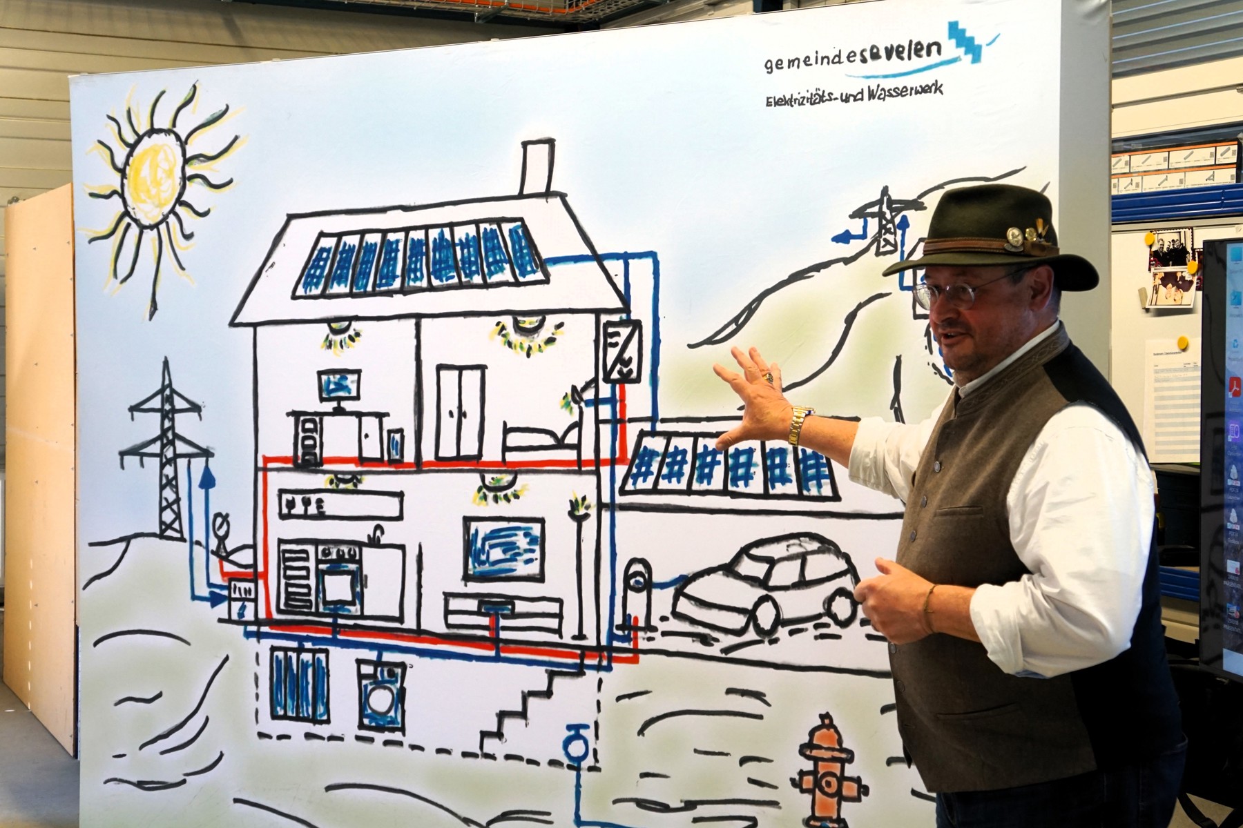 In der Halle des EW Sevelen veranschaulichte Reto Zampatti, Leiter des Elektrizitäts- und Wasserwerks Sevelen, die breite Palette an Dienstleistungen – von Installationen, Kommunikationsnetzen und -angeboten über Strom- und Wasserversorgung bis hin zu Photovoltaik-Anlagen und E-Mobilitätslösungen. Der Gewerbe- und Industrieverein Sevelen machte auf die Vorzüge der ortsansässigen Fachpartner aufmerksam: persönliche Kontakte, Service und Nähe.