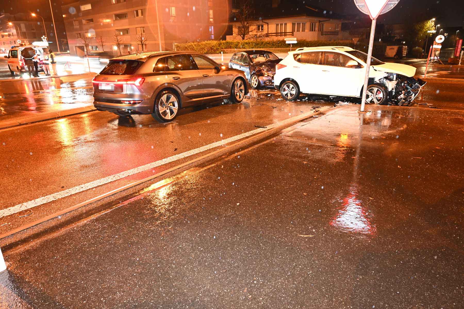 Durch den Zusammenprall wurde das Auto des 53-Jährigen nach rechts abgewiesen und in das Auto eines 35-Jährigen gestossen, welches stehend bei der Autobahnausfahrt stand. Die 55-jährige Frau wurde durch den Unfall leicht verletzt. Sie konnte sich selbständig in ärztliche Behandlung begeben.