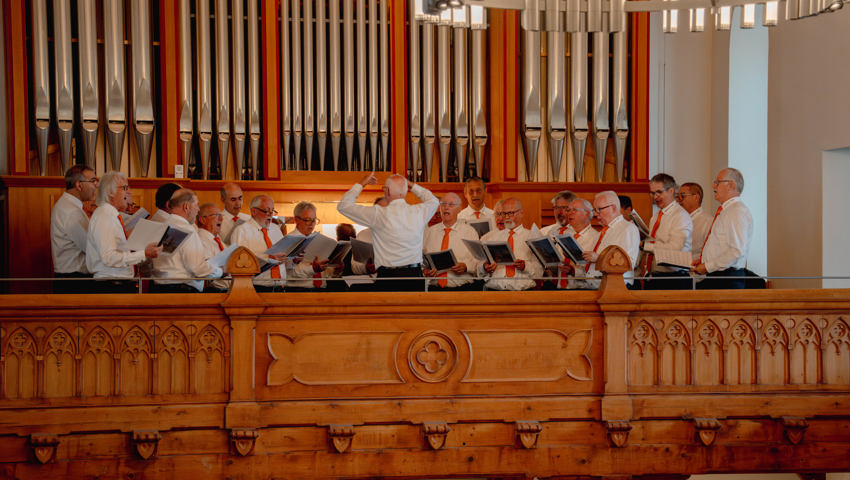 Die Kirche füllte sich nochmals, als am Nachmittag der gemischte Chor und der Männerchor einige Lieder zum Besten gaben. Etliche Zuhörer liessen sich von den klangvollen Melodien mitreissen und stimmten in den Gesang ein.