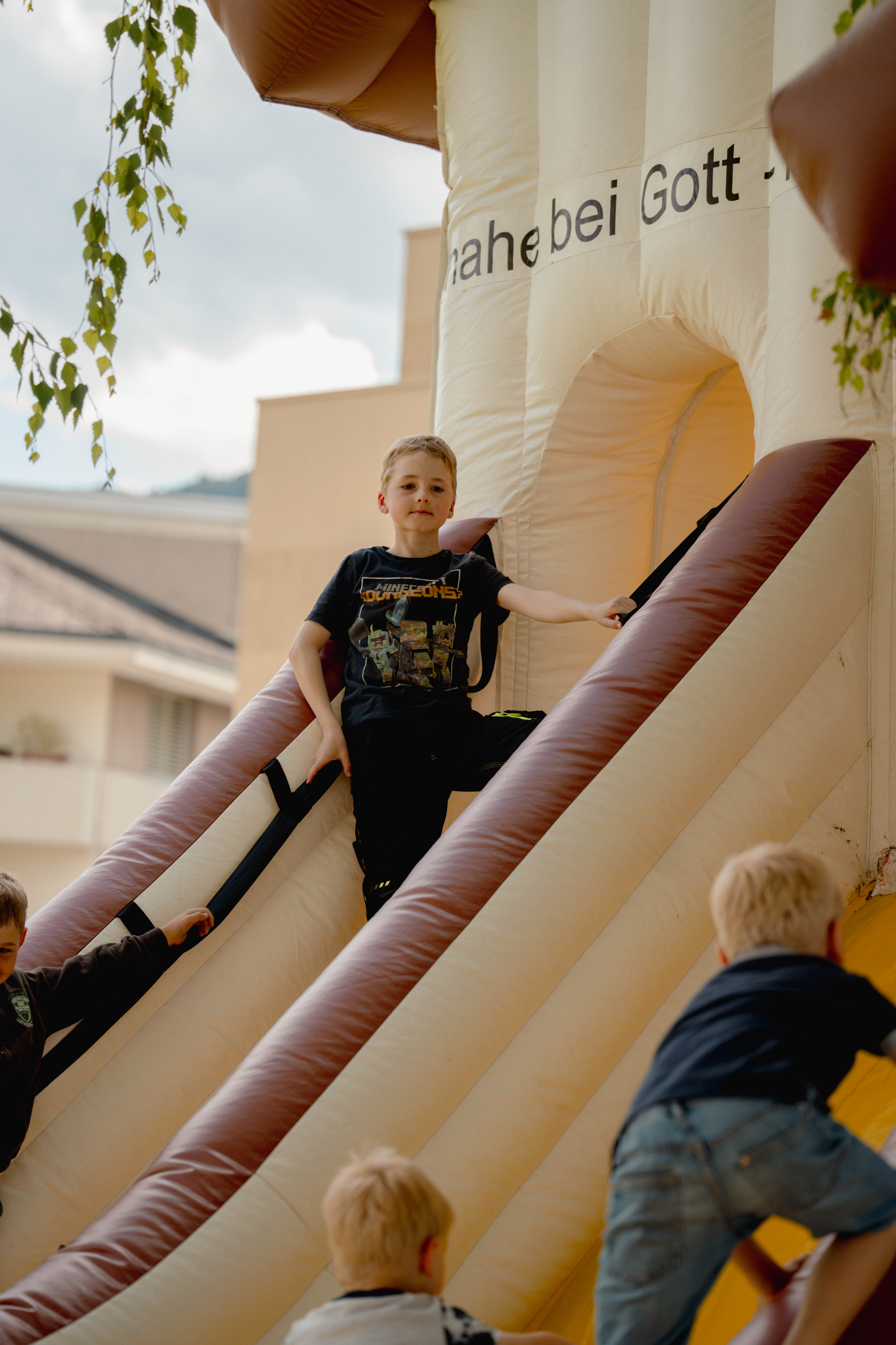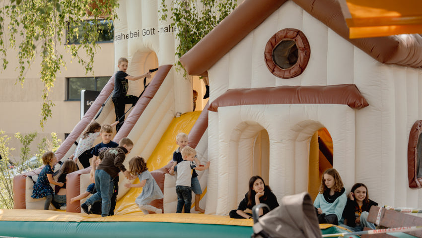 Im Anschluss an den Gottesdienst wurden die vielen Besucher von Dutzenden freiwilliger Helferinnen und Helfer verköstigt. Diese hatten teilweise bereits Tage zuvor gekocht und vorbereitet. Ukrainische Mitglieder der Gemeinde bereiteten Borschtsch zu. Man wurde mit vielfältigen Salaten, Linsencurry, Crêpes, Schnitzelbrot, Würsten und einem reichhaltigen Dessert-Buffet verwöhnt. Die Kinder genossen Spiel und Spannung beim Cevi oder die riesige Kirchen-Hüpfburg.