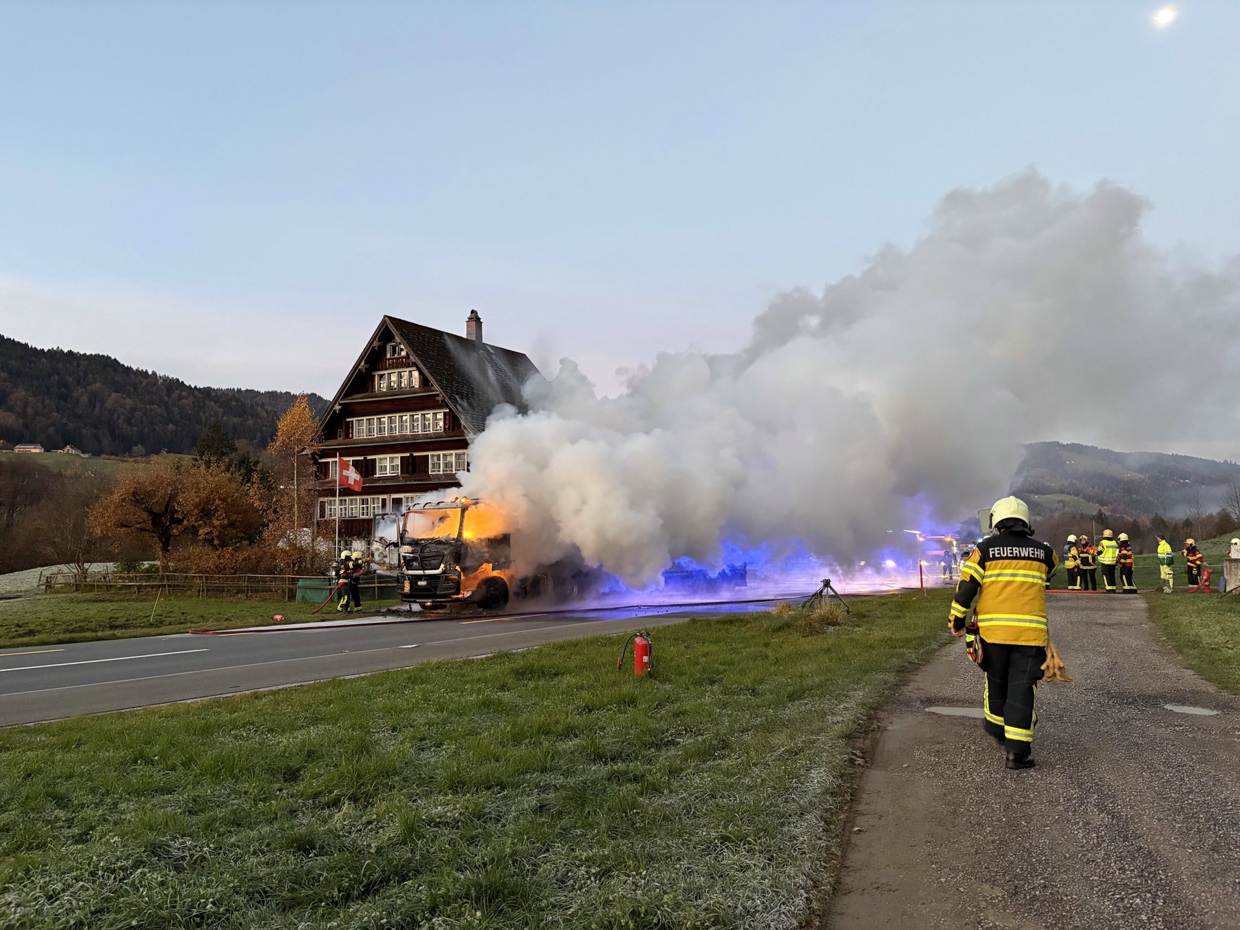 Ein Knall in der Fahrzeugfront – dann ging der Lastwagen in Flammen auf