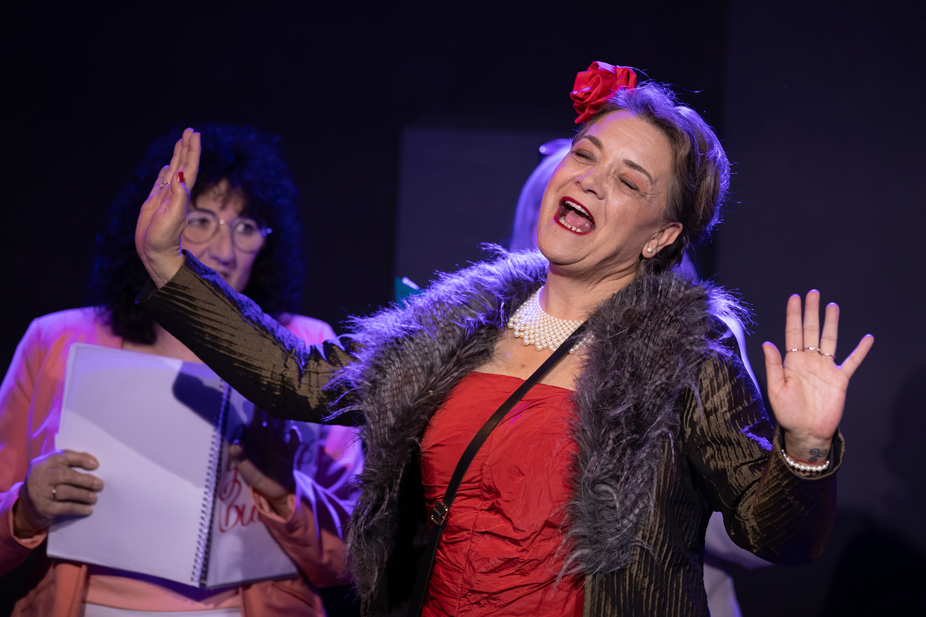 Möglich war dies nur, weil jeden Abend auch viele Helferinnen und Helfer für die Produktion im Einsatz standen: Lichtoperateur Guido Poznicek, Tonoperateur Steffan Arends, die umsichtige Diogenes-Wirtin Manuela Stieger, Dee Sieber (Tickets) und all die guten Hände, die im Backstagebereich beim schnellen Umziehen und Verkleiden halfen.