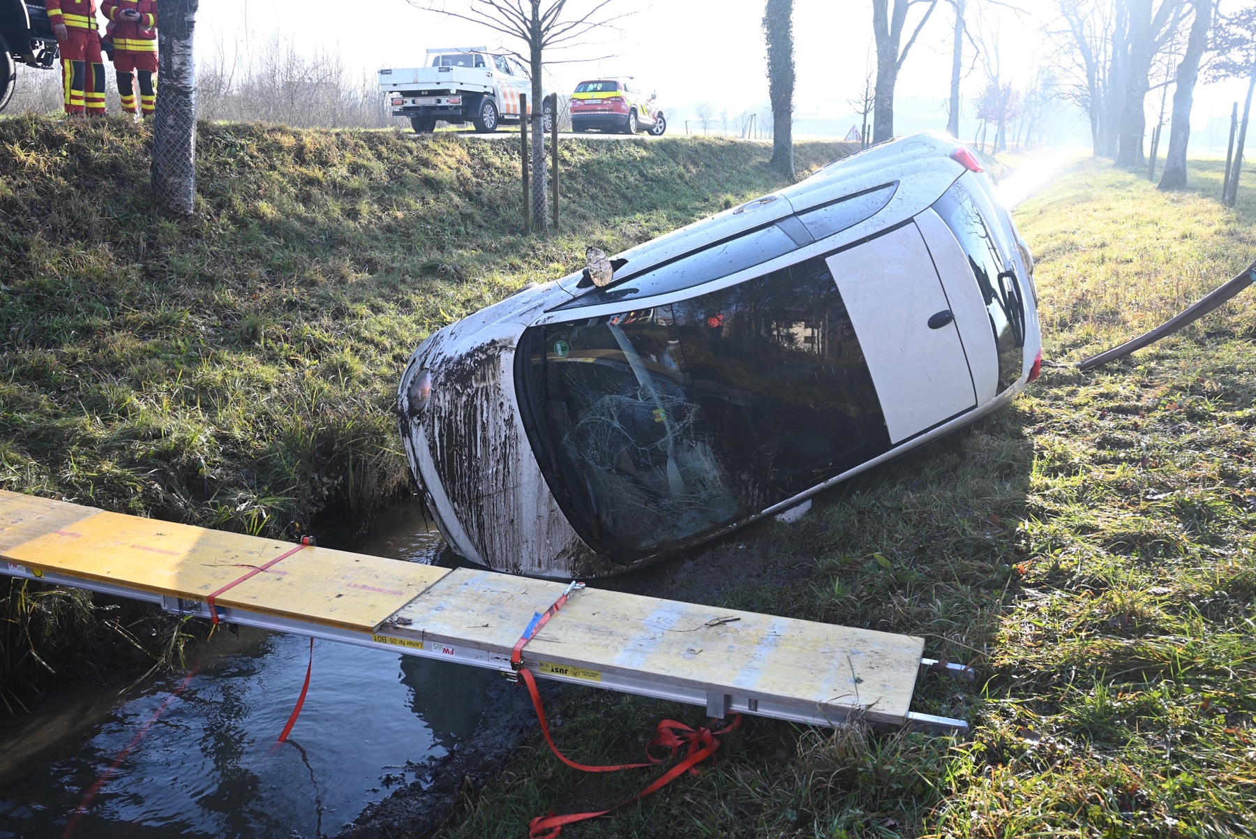 Kurz vor 13.30 Uhr wurde der Notruf- und Einsatzleitzentrale ein verunfalltes Auto im Mülbach gemeldet. Die ausgerückte Patrouille traf ein auf der linken Seite liegendes Auto an. Die 61-jährige Fahrerin befand sich noch im Auto, konnte es wegen der Seitenlage aber nicht selbständig verlassen, heisst es in einer Medienmitteilung der Kantonspolizei.
