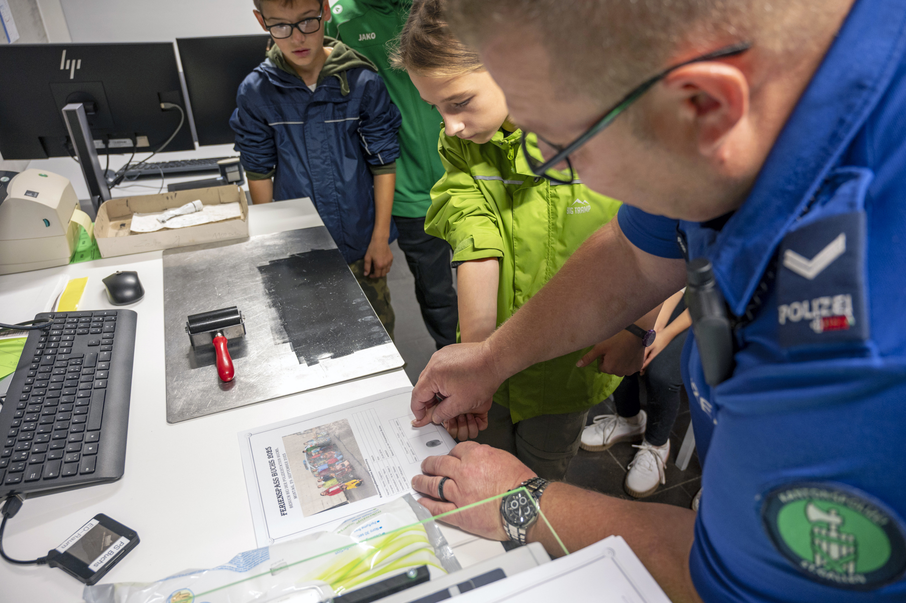 AnmeldenAm ersten Tag des Ferienspass erhielten Kinder Einblick in die Arbeit der Kantonspolizei auf der Polizeistation Buchs.