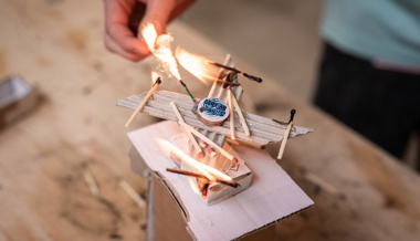 Wer lieber etwas mit Feuer experimentieren wollte, baute ein Domino mit Zündhölzchen und Feuerwerk, während andere sich beim Nähen von Schlüsselanhängern oder Bedrucken von Taschen mit selbst gemachten Stempeln kreativ austobten.