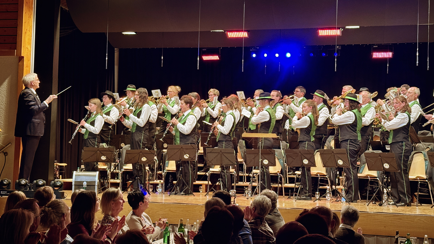 Pink! Bestürzung, Gekicher, Erstaunen, Freude. Die Gefühle der Musikantinnen und Musikanten der Bürgermusik Wildhaus schlagen Kapriolen, als ein Mitmusikant in der neuen, pinken Uniform die Bühne betritt.