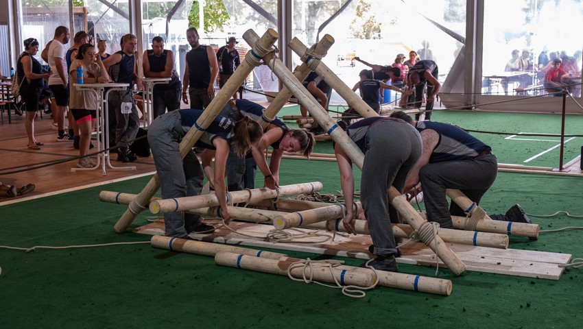 Zu einer weiteren Neuheit kam es auch beim Gruppenschnüren. Zum ersten Mal wurde das von Buchser Pontonieren massgeblich entwickelte Objekt an einem Wettkampf geschnürt. Beim neuen Schnürobjekt handelt es sich um eine Brücke, die bei den Aktiven in einer vierer Gruppe und bei den Jungpontonieren in einer redimensionierten Version zu dritt auf- und wieder abgebaut wird.