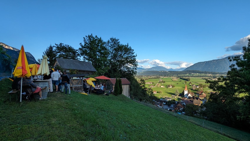 Gelegen zwischen dem Rebberg von Hans Bernegger und dem Weingut Gonzen, präsentiert er den zahlreichen Gästen bereits eigenen Wein bei bester Aussicht ins Tal.