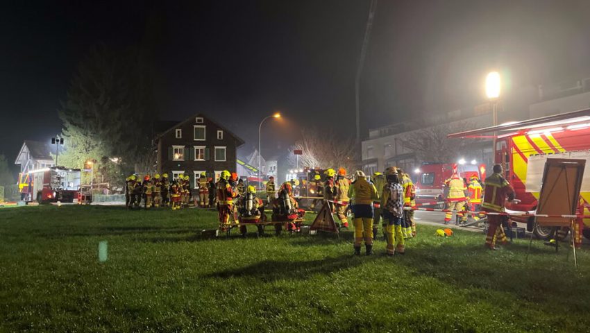 Die Laube im ersten Obergeschoss fing Feuer. Das Feuer breitete sich rasch aus und griff auf die Liegenschaft über. Eine 52-jährige Frau, die sich im Haus befand, konnte dies selbstständig verlassen.