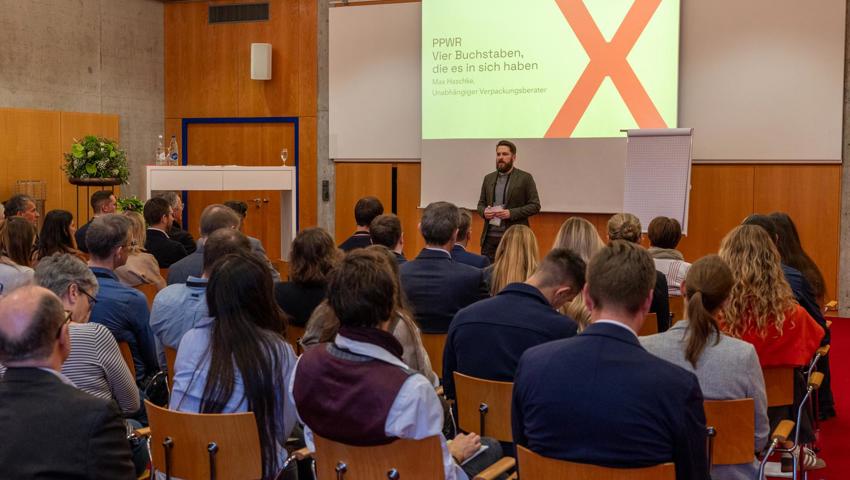 Michele Vela, Direktor der Ebnat AG gab Einblicke in das Nachhaltigkeitskonzept seines Unternehmens. Verpackungsberater Max Haschke erklärte die neue EU-Verpackungsverordnung PPWR und motivierte die Unternehmen, sich bereits jetzt damit auseinanderzusetzen sowie ihre Prozesse zu überdenken und anzupassen.