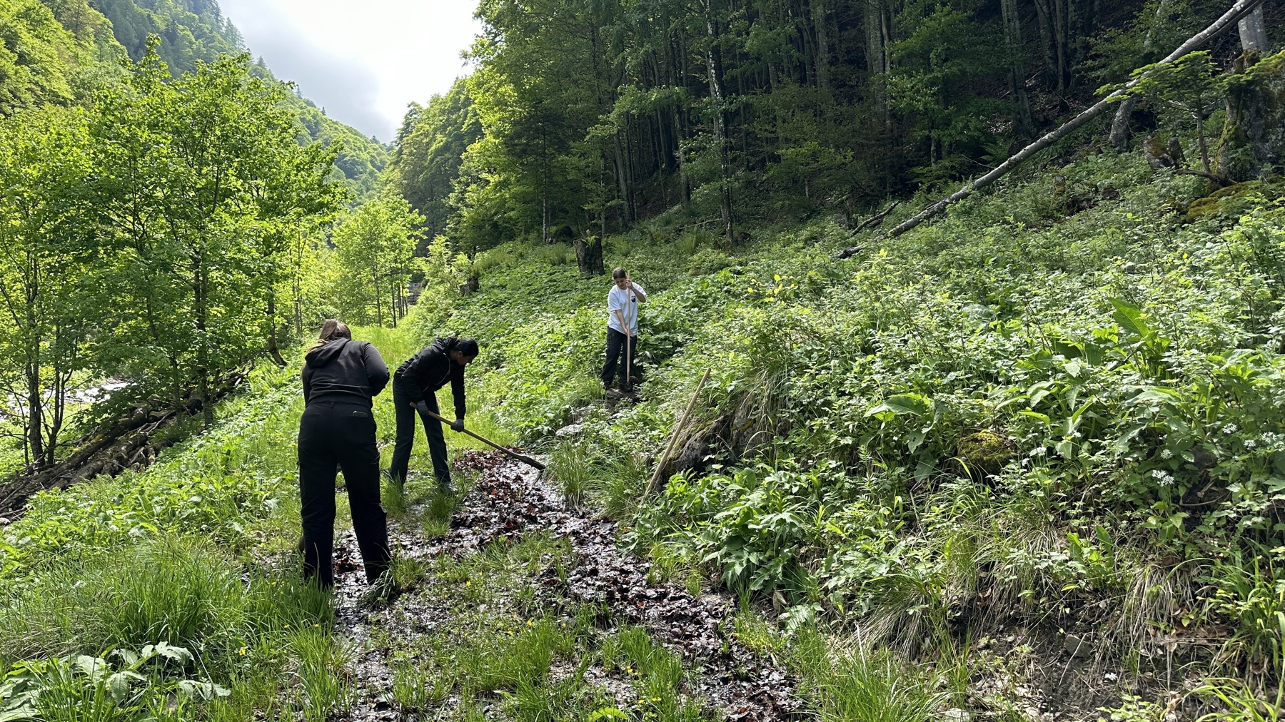 Insgesamt vier Auszubildende unterstützten das EWB-Team drei Tage lang tatkräftig. Vom Pflegen und Reinigen der Weiher und Waldwege bis hin zum Einzäunen auf der Alp Malschüel war alles dabei. Trotz der körperlichen Anstrengung blieben sie stets motiviert und hatten Spass an ihrer Arbeit.