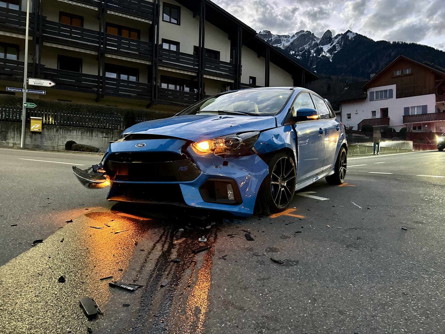 Gegen 7 Uhr fuhr ein Mann mit seinem Personenwagen talwärts auf der Lawenastrasse mit der Absicht, nach links in eine Nebenstrasse abzubiegen. Dabei übersah er einen von links kommenden, vortrittsberechtigten Personenwagen eines anderen Mannes. In der Folge kollidierten die beiden Fahrzeuge. Es entstand Sachschaden an beiden Fahrzeugen, teilt die Landespolizei mit.