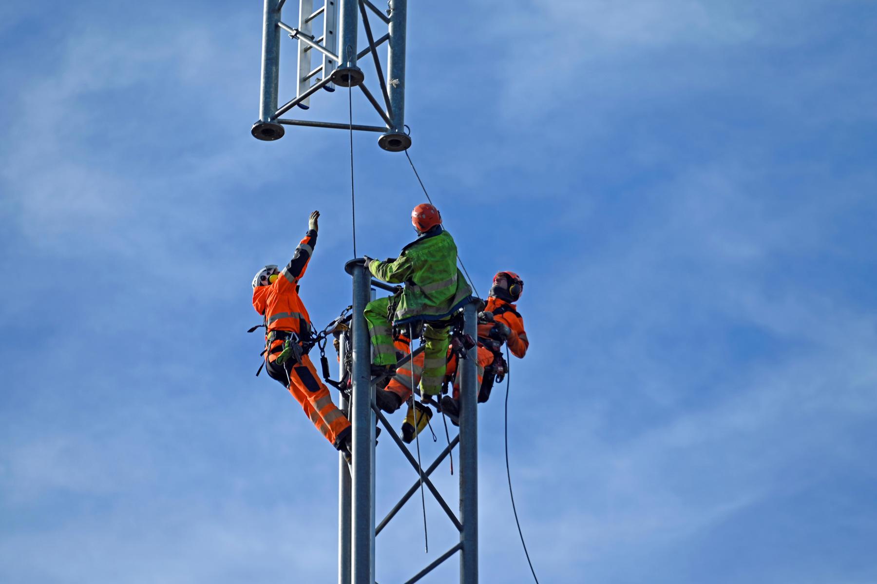 AnmeldenIndustriekletterer, Seiltechniker und ein Helikopter haben am Dienstag den gut 105 Meter hohen Windmessmast in der Sennwalder Au aufgebaut.