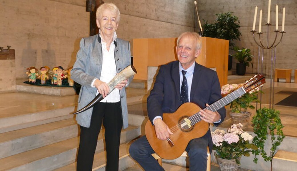 Zwischen den Texten konnten die Zuhörer die Gedanken in der Musik nachklingen lassen. Musikerin Mechthild Neufeld von Einsiedel spielte auf historischen Instrumenten Stücke aus dem 15. bis 18. Jahrhundert und wurde von Johannes Grabher mit der Gitarre einfühlsam begleitet.