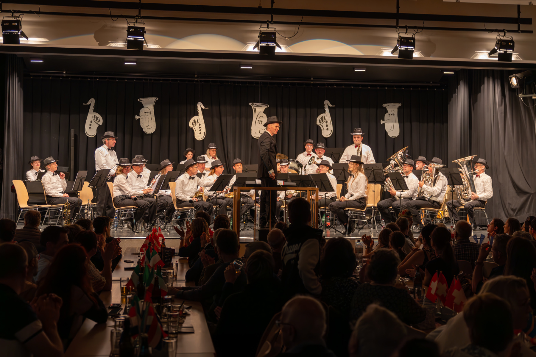 Die Musikgesellschaft Sevelen mit dem musikalischen Leiter Martin Werner brachte im ersten Teil des Abends neun Hits aus der Geschichte des ESC auf die Bühne, darunter der erste grosse Schweizer Beitrag «Ne Partez Pas Sans Moi» von Céline Dion aus dem Jahr 1988, «Waterloo», mit welchem Abba 1974 der Durchbruch gelang oder «Rise Like a Phoenix» aus dem Jahr 2014 – von Kunstfigur «Conchita Wurst» gesungen.