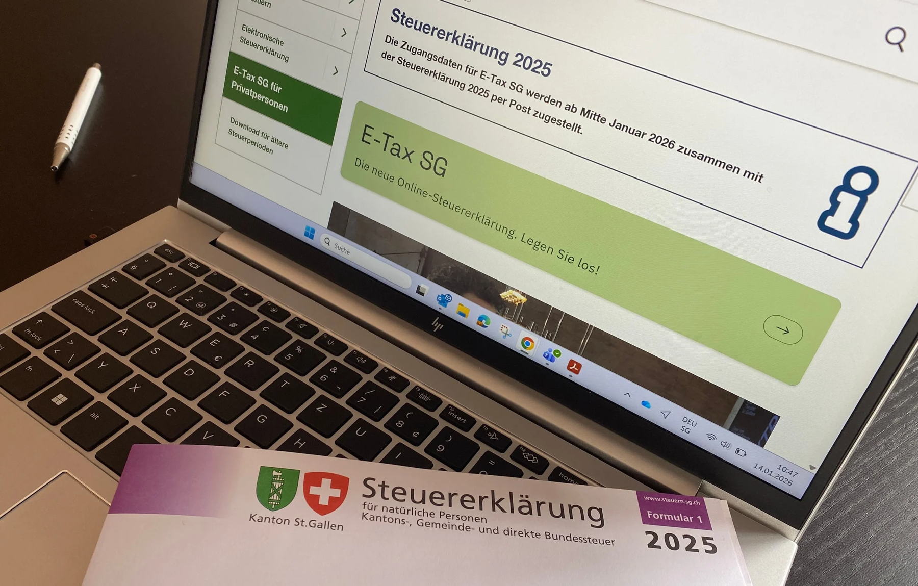 AnmeldenIm Kanton erledigt mittlerweile fast die Hälfte der Steuerpflichtigen ihre Steuererklärung vollständig digital. Die bisherige Software ist allerdings schon über 20 Jahre alt. Jetzt wechselt der Kanton auf eine neue Lösung namens E-Tax SG. Was heisst das für die Steuerzahlerinnen und Steuerzahler?