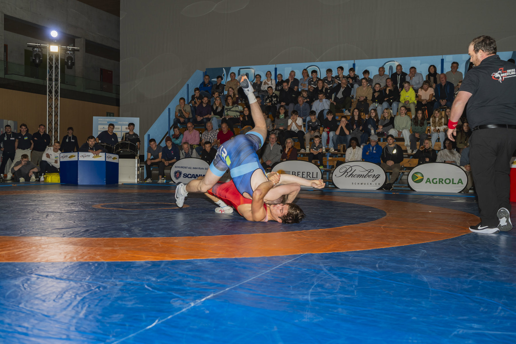 Auch Andreas Vetsch zeigte gegen den jungen Kaderringer Saya Brunner bis 75kg Greco eine souveräne Vorstellung. Nach einem harten Kampf punktete der Routinier in der zweiten Halbzeit im Bodenkampf entscheidend und gewann 9:1. Zum Abschluss des Abends unterlag Abas Ayoubi dem Internationalen Nino Leutert bis 75kg Freistil mit 0:15.