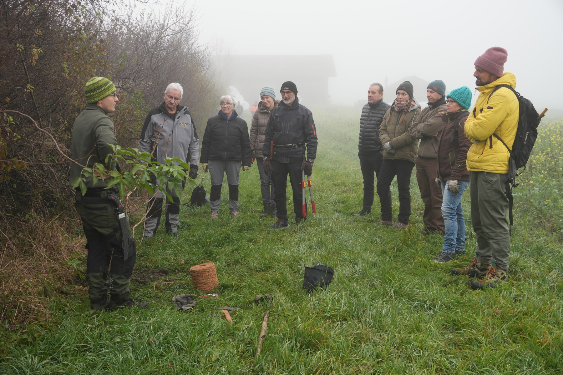 Als sich zum Abschluss der Nebel hob, fiel der Blick auf die von den Kursteilnehmenden frisch geschnittene Wildhecke. Mit Erde an den Stiefeln und neuen Ideen im Kopf gingen die Teilnehmenden nach Hause – bereit, ihre eigenen Gärten in kleine Paradiese zu verwandeln.