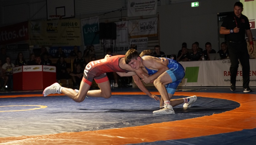 Nun durften sich die Zuschauer auf einen spannenden Schlusskampf freuen: Der 22-jährige Maurus Zogg, Natikaderathlet des RCOG, traf auf den routinierten Olympioniken Pascal Strebel. Zogg zeigte eine ganz starke Leistung, er stellte Strebel in Halbzeit eins passiv und ging mit einer 1:0-Führung in die Pause. In der zweiten Hälfte wurde Strebel erneut wegen Passivität in die Bodenlage verwiesen, Zogg durfte sich einen weiteren Punkt gutschreiben lassen. Kurz vor Kampfende musste dann auch Zogg wegen Passivität in die Bodenlage. Der Grabser fing Strebel aber bei einem Durchdreherversuch ab und durfte sich zwei weitere Punkte gutschreiben lassen. Das 4:0 brachte er über die Zeit.