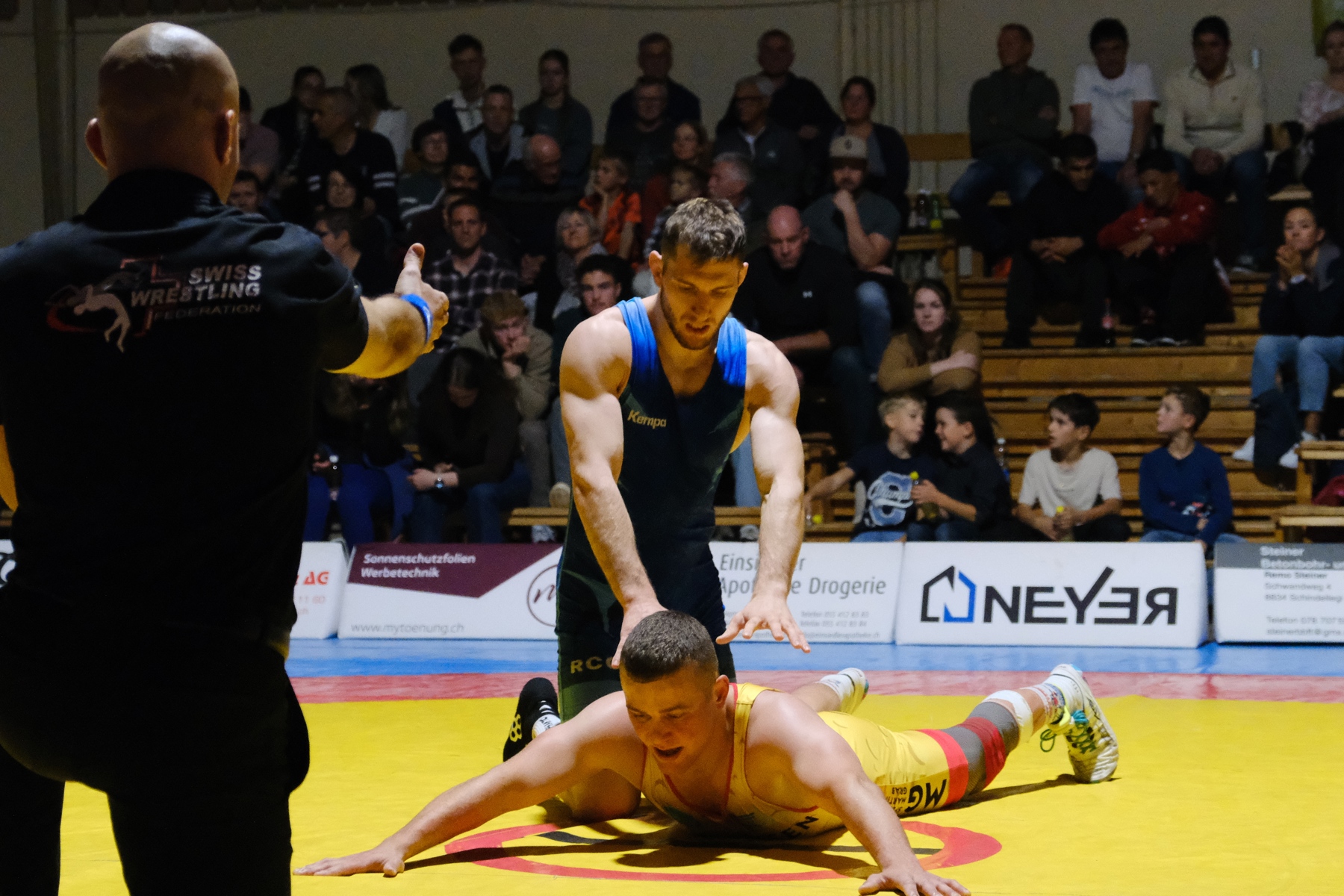 Nach der Pause zeigte Quintus Zogg einen tollen Freistilkampf gegen Yves Neyer. Musste Zogg sich in der vergangenen Saison dem Einsiedler noch zweimal geschlagen geben, bezwang er ihn an diesem Abend mit 10:7. Der Grabser schrammte dabei gleich doppelt nur knapp an einem Schultersieg vorbei. Bis 70 kg Freistil wurde Mathys Sarrasin von Lars Neyer ausgepunktet – seine Zweierwertung gleich zu Beginn rettete immerhin einen Mannschaftsscore für die Rheintal-Werdenberger.