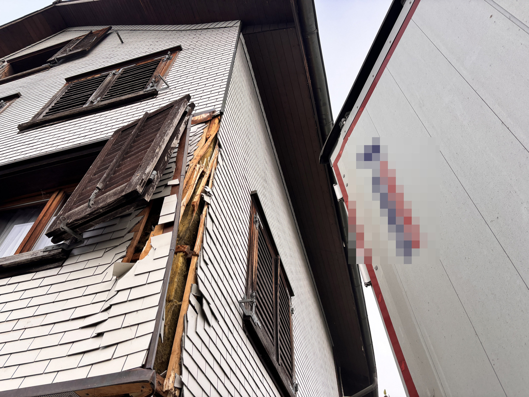 Sattelschlepper reisst Hausfassade auf