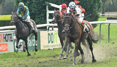 Doch nach der Landung des siebtletzten Hindernisses rutschte die Stute leicht weg. Was reichte, um Jockey Gabriele Agus aus dem Sattel zu katapultieren. So feierte am Ende Falko des Flos einen überlegenen Sieg.