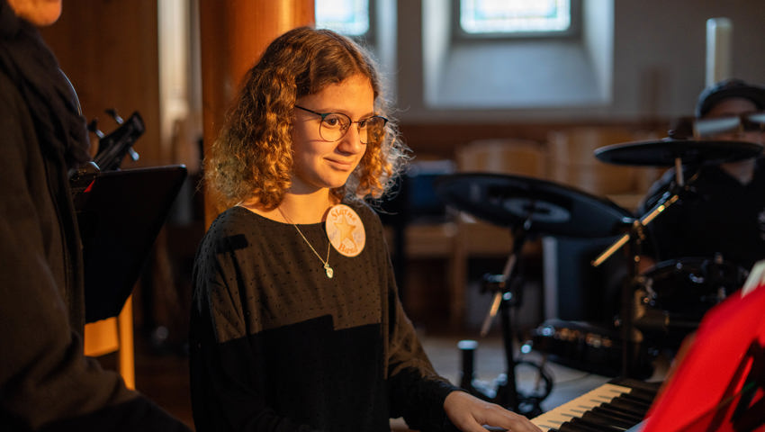Andrea Matter und Anna Jossen übten mit Schauspielern und Chor das Musical über Wochen im Kidstreff ein. Irene Stäheli probte mit den Instrumentalisten.