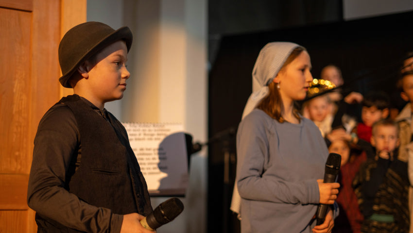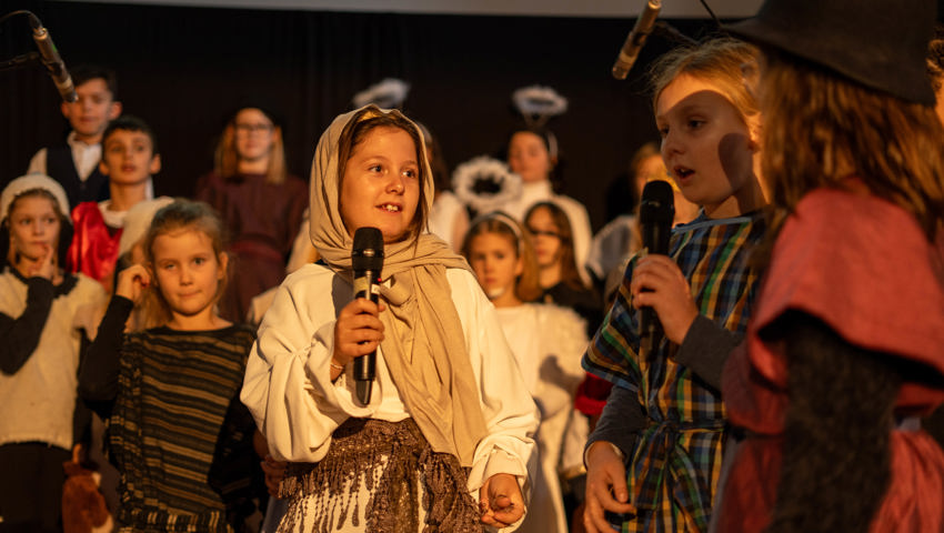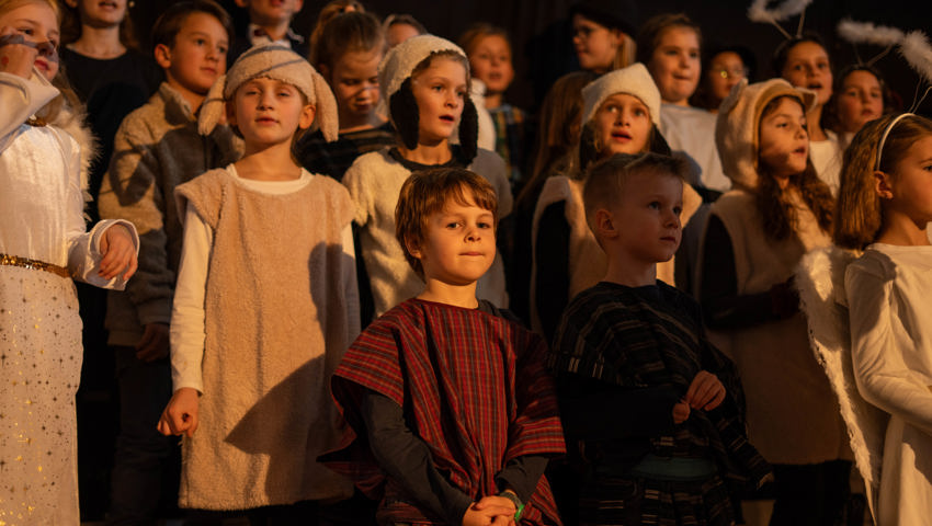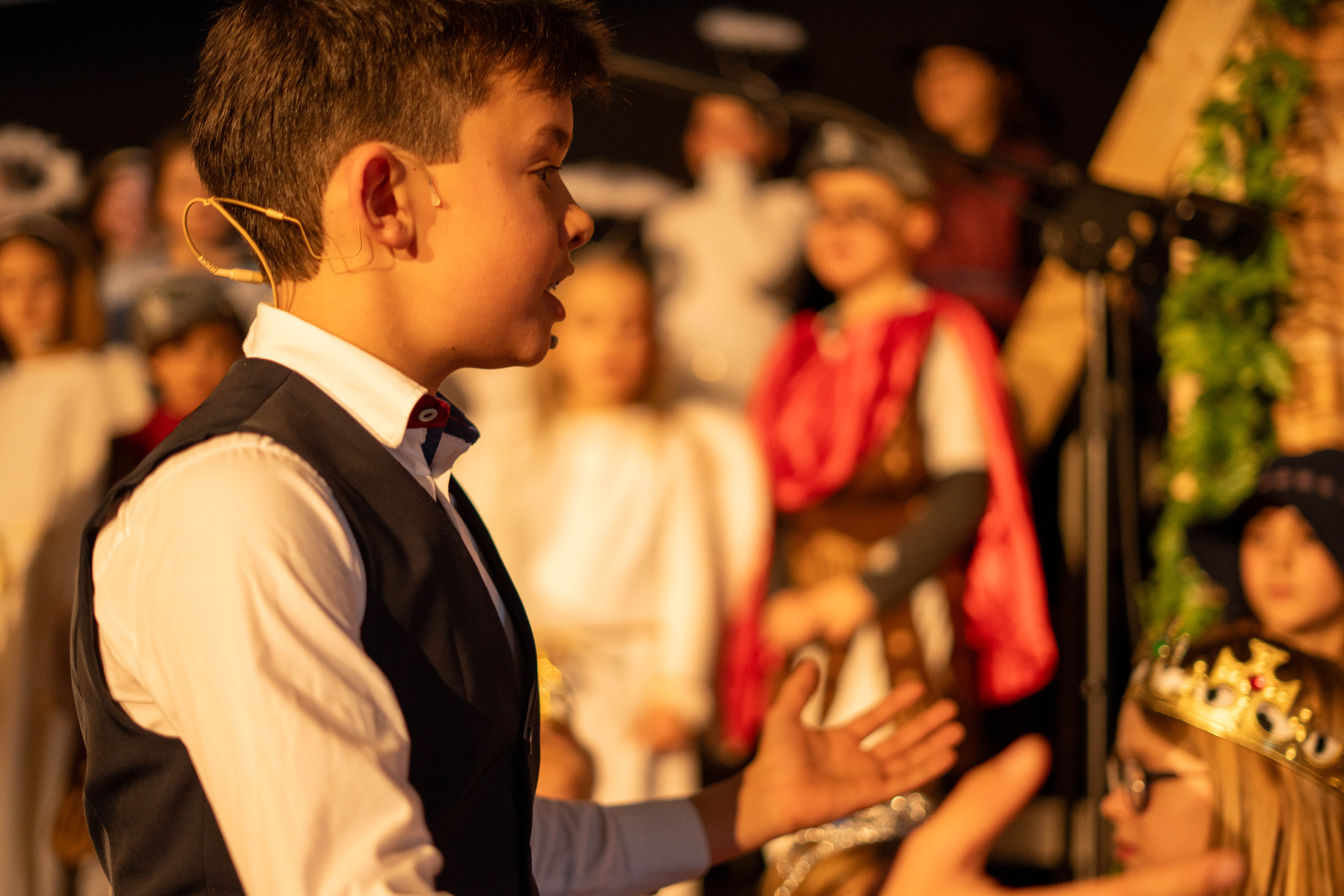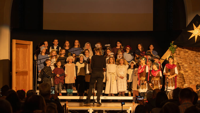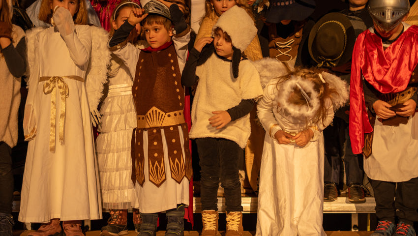 Über 60 Kinder und Jugendliche inszenierten die Weihnachtsgeschichte aus dieser Perspektive. Mit viel Engagement wurde in der Grabser Kirche gespielt, gesungen und musiziert.