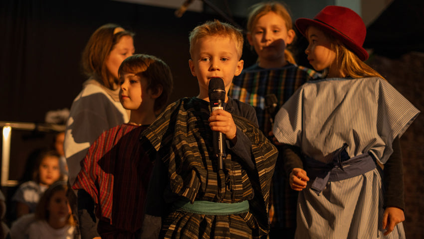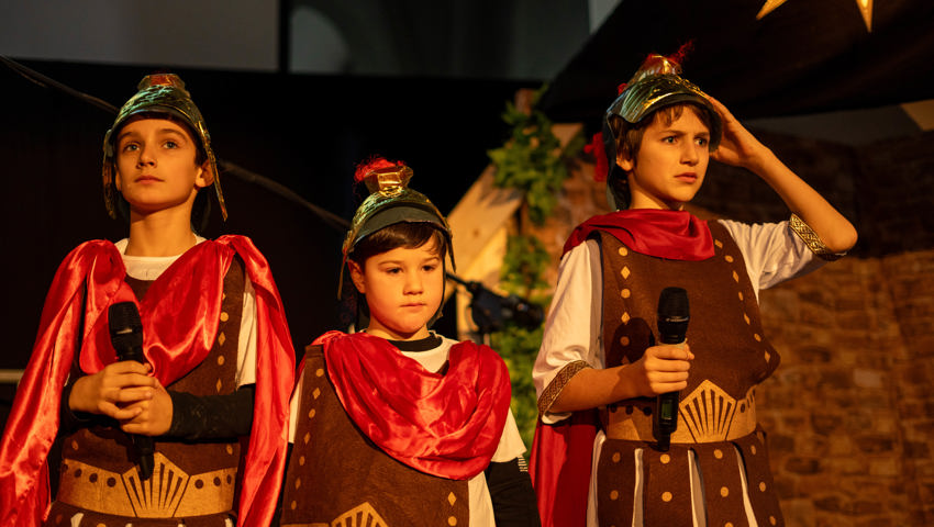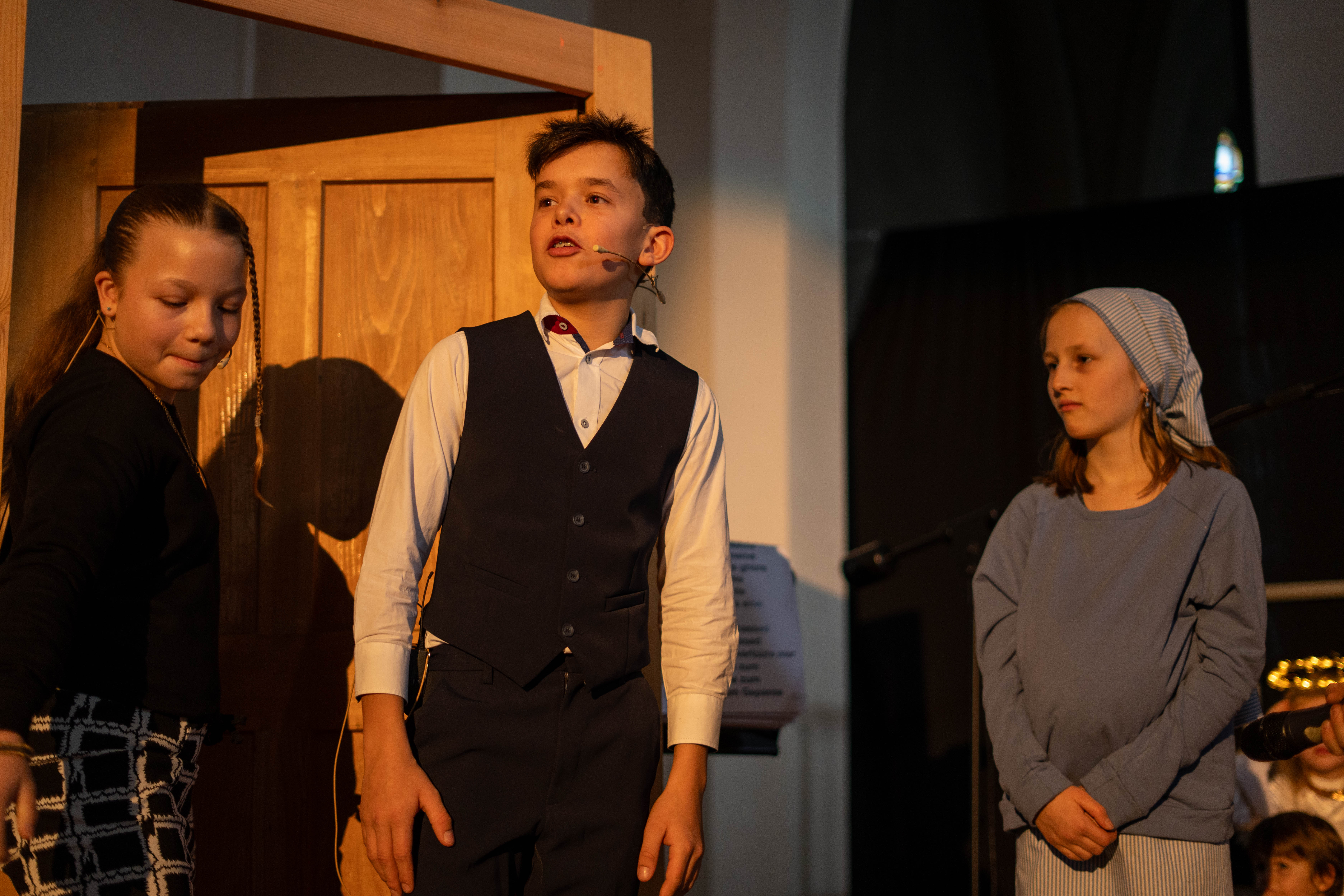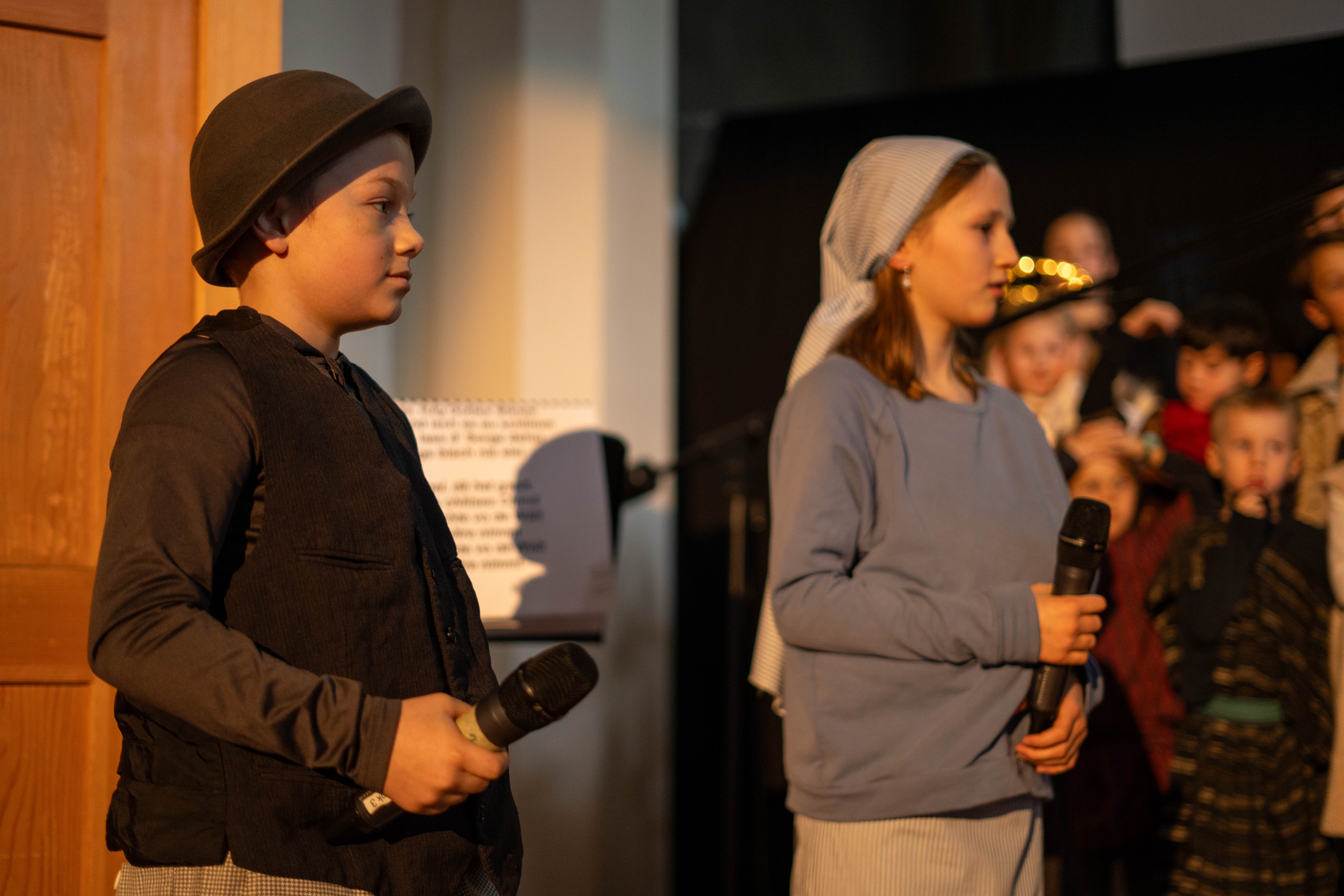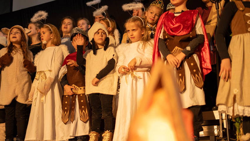 Über 60 Kinder und Jugendliche inszenierten die Weihnachtsgeschichte aus dieser Perspektive. Mit viel Engagement wurde in der Grabser Kirche gespielt, gesungen und musiziert.