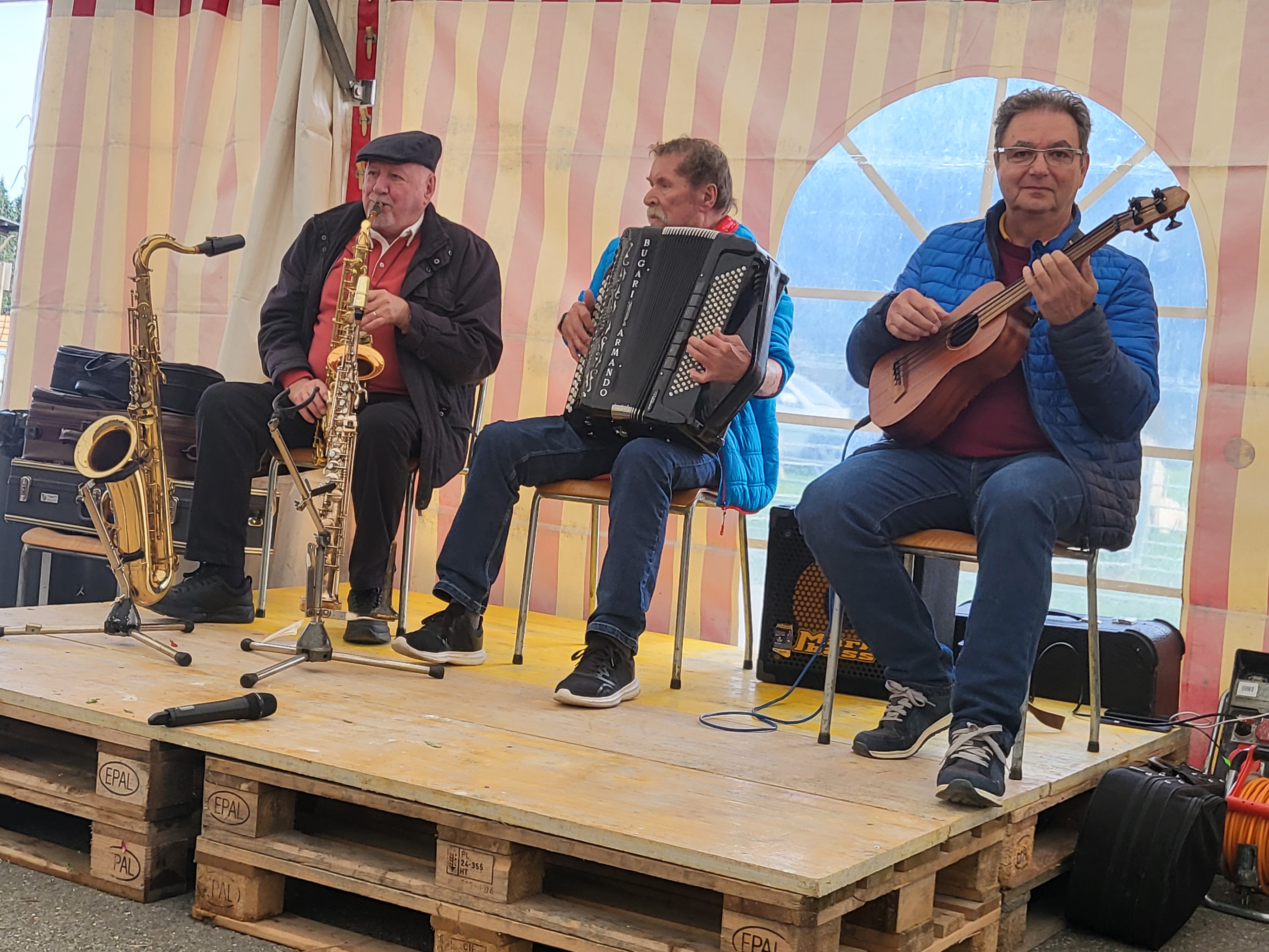 Durch die Festwirtschaft bei dem auch «Schöfigs» mit Spätzli und Rotkraut angeboten wurde, wurden auch die Besucherinnen und Besucher durch das Trio Urs, Mirco und Jonny musikalisch unterhalten.