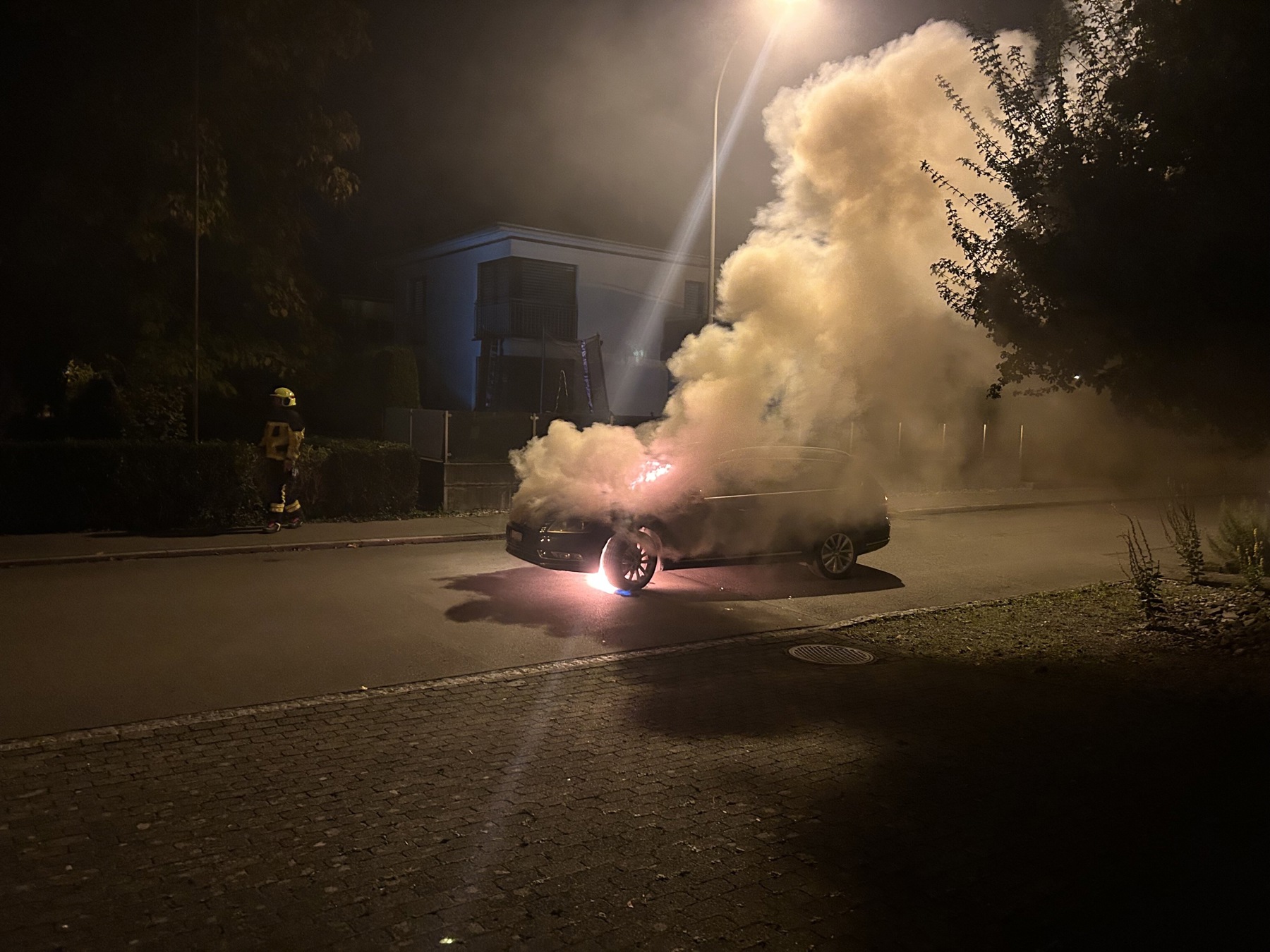 Wie es in einer Medienmitteilung der Polizei heisst, ist das Auto kurz nach 22 Uhr auf der Unnothstrasse in Brand geraten. Ein 63-jähriger Mann bemerkte im Motorraum seines Autos Rauch. Er parkierte es und entdeckte bereits Flammen aus dem Motorraum. Er konnte den Brand mit einem Feuerlöschen eindämmen. Die ausgerückte Feuerwehr löschte den Brand dann endgültig.