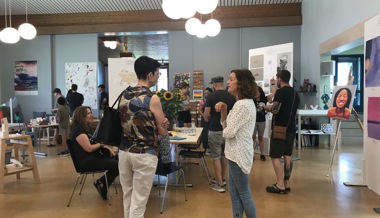 Unter den Besuchenden, den kleinen und grossen Künstlerinnen und Künstlern und den Unterrichtenden entstanden dabei interessante Gespräche über die Qualität, Kreativität, Techniken und Thematiken der gezeigten Arbeiten. Während in den Innenräumen geschaut, gestaunt, diskutiert, gegessen und getrunken wurde, durften die Besucherinnen und Besucher im Aussenraum ausserdem selber kreativ tätig werden.