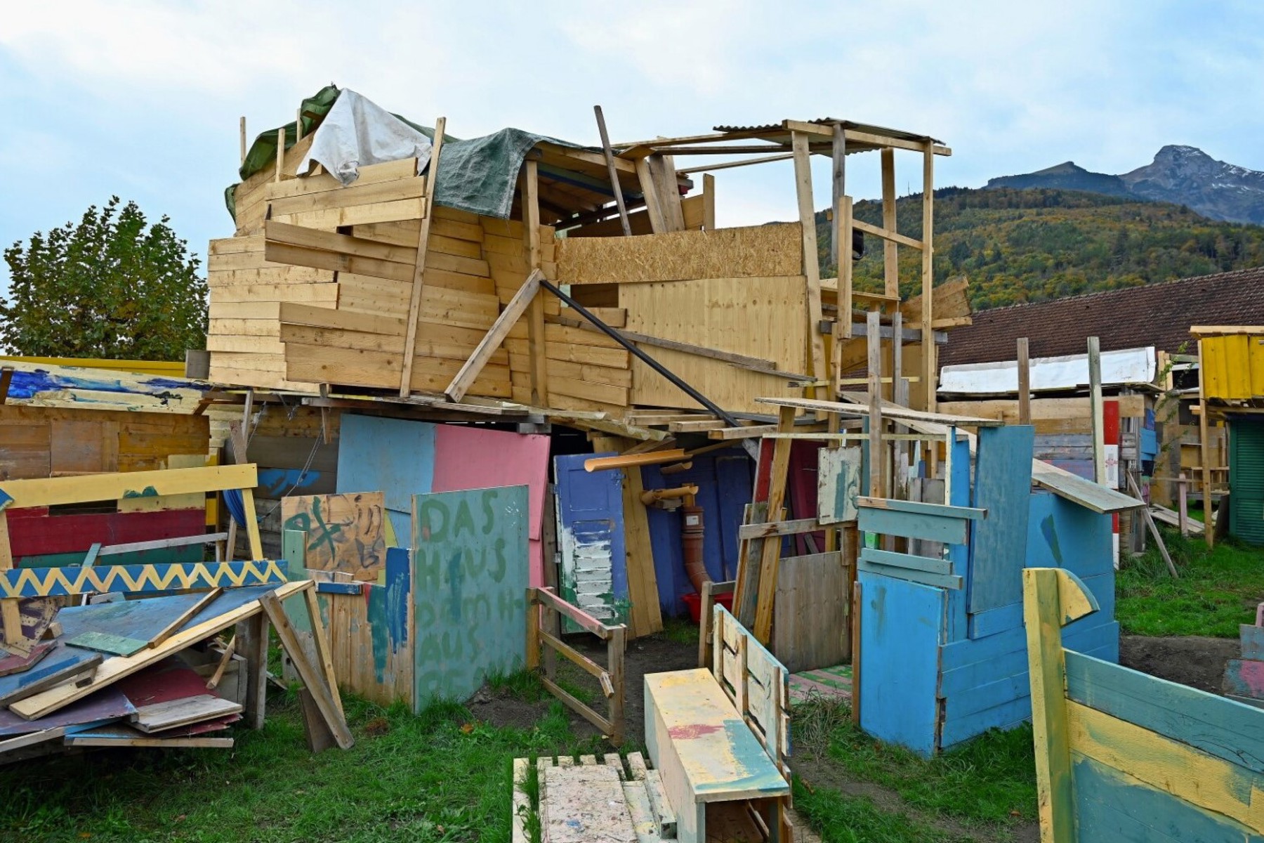 AnmeldenBaumeister Tim hat fünf Monate an seinem Haus auf der Kinderbaustelle gewerkelt. Kurz vor dem Abbruch gab er eine Führung.