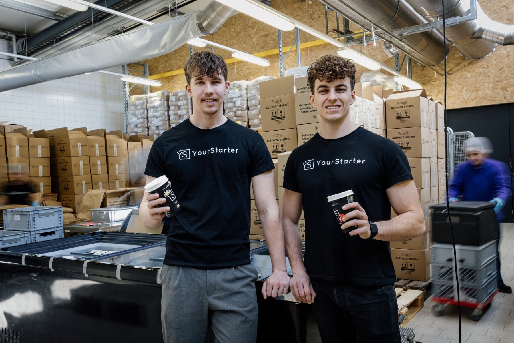 Bananenstücke abwägen, Erdnussmus portionieren, Becher mit einer Siegelfolie verschliessen: Dreimal pro Woche ist bei der Your Starter GmbH in Oberriet einiges los, wenn die Frühstücksdrinks zum Versand bereit gemacht werden. Die Mitarbeitenden tragen blaue Latexhandschuhe und weisse Hauben und packen eifrig die Bestellungen ab. Bis am frühen Abend müssen sie fertig sein. Dann holt die Post die unzähligen Päckchen ab.